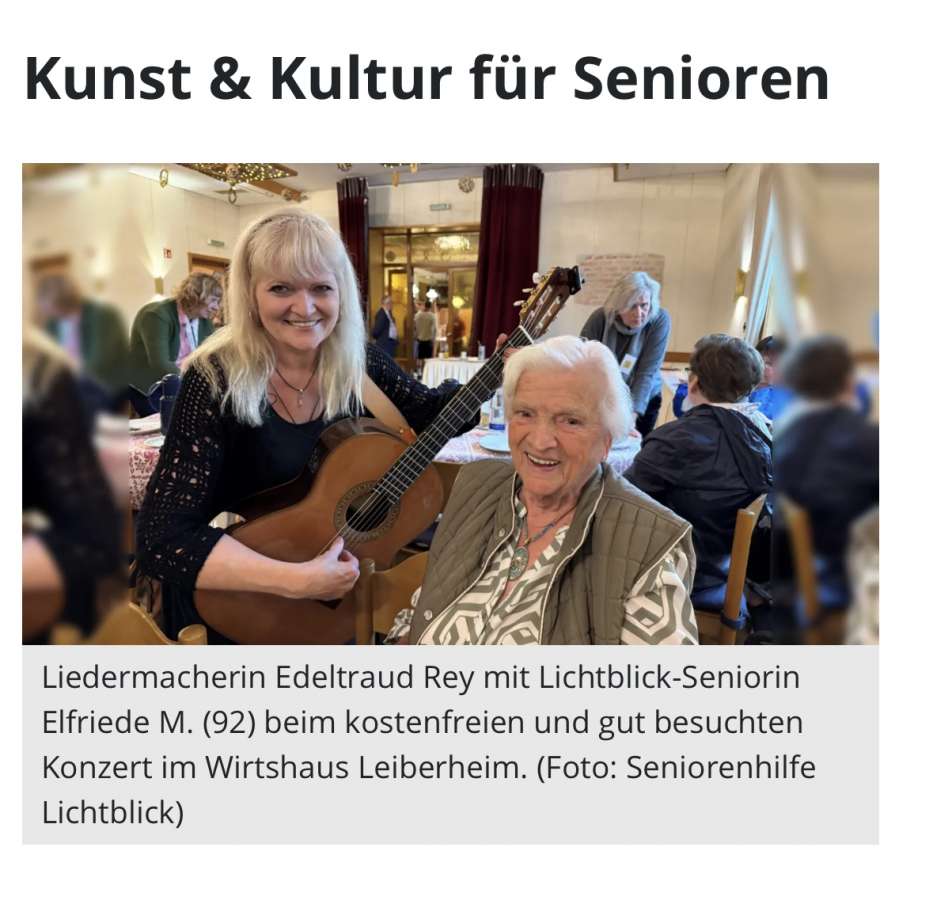Am 10. September 2025 spielte ich in der Gaststätte Leiberheim ein Konzert, den Bericht darüber kann man in der Mediathek sehen:www.muenchen.tv - Alle Videos - Sendung "München tut gut" von Magdalena ...